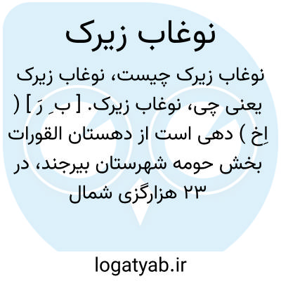 نوغاب زیرک. [ ب ِ رَ ] ( اِخ ) دهی است از دهستان القورات بخش حومه شهرستان بیرجند، در 23 هزارگزی شمال شرقی بیرجند در منطقه کوهستانی معتدل هوایی واقع است و 299 تن سکنه دارد. آبش از قنات، محصولش غلات و گردو و بادام، شغل مردمش زراعت و قالی بافی است. ( از فرهنگ جغرافیایی ایران ج 9 ).