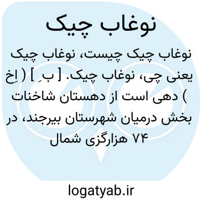 نوغاب چیک. [ ب ِ ] ( اِخ ) دهی است از دهستان شاخنات بخش درمیان شهرستان بیرجند، در 74 هزارگزی شمال غربی درمیان و 11 هزارگزی جنوب شاخن، در منطقه کوهستانی معتدل هوائی واقع است و 299 تن سکنه دارد. آبش از قنات، محصولش غلات و بنشن، شغل مردمش زراعت است. ( از فرهنگ جغرافیایی ایران ج 9 ).