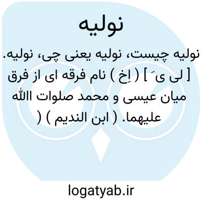 لغت نامه دهخدا نولیه. [ لی ی َ ] ( اِخ ) نام فرقه ای از فرق میان عیسی و محمد صلوات اﷲ علیهما. ( ابن الندیم ) ( یادداشت مؤلف ).