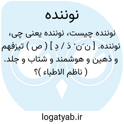 لغت نامه دهخدا نوننده. [ ن َن ْ دَ / دِ ] ( ص ) تیزفهم و ذهین و هوشمند و شتاب و جلد. ( ناظم الاطباء )؟