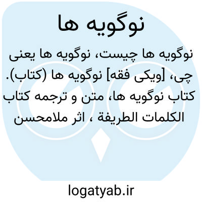 [ویکی فقه] نوگویه ها (کتاب). کتاب نوگویه ها، متن و ترجمه کتاب الکلمات الطریفة، اثر ملامحسن فیض کاشانی (۱۰۹۱ ق) است که توسط آقای دکتر عبدالله موحدی به زبان فارسی ترجمه شده است.