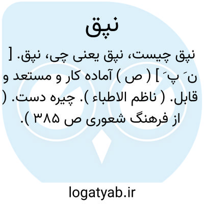 نپق. [ ن َ پ َ ] ( ص ) آماده کار و مستعد و قابل. ( ناظم الاطباء ). چیره دست. ( از فرهنگ شعوری ص 385 ).