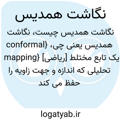{conformal mapping} [ریاضی] یک تابع مختلط تحلیلی که اندازه و جهت زاویه را حفظ می کند