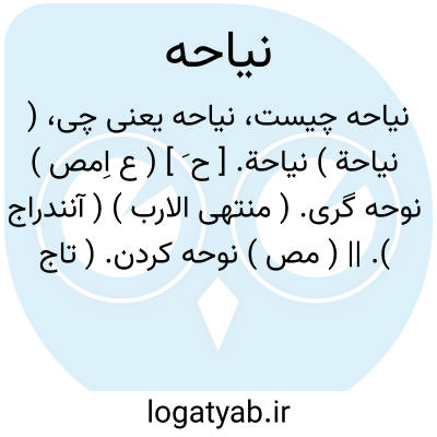 ( نیاحة ) نیاحة. [ ح َ ] ( ع اِمص ) نوحه گری. ( منتهی الارب ) ( آنندراج ). || ( مص ) نوحه کردن. ( تاج المصادر بیهقی ) ( زوزنی ). نوح. مناح. نیاح. نواح. ( اقرب الموارد ). رجوع به نَوح و نیاح شود.