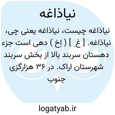 نیاذاغه. [ غ ِ ] ( اِخ ) دهی است جزء دهستان سربند بالا از بخش سربند شهرستان اراک. در 36 هزارگزی جنوب غربی آستانه و 8هزارگزی راه قدیم بروجرد به اراک، در منطقه کوهستانی سردسیری واقع است و 417 تن سکنه دارد. آبش از قنات و چشمه، محصولات عمده اش غلات و بنشن و شغل مردمش زراعت و گله داری است. ( از فرهنگ جغرافیائی ایران ج 2 ).