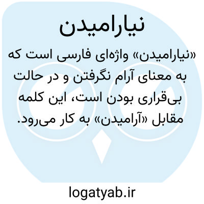 «نیارامیدن» واژه‌ای فارسی است که به معنای آرام نگرفتن و در حالت بی‌قراری بودن است، این کلمه مقابل «آرامیدن» به کار می‌رود. این اصطلاح معمولاً برای توصیف حالتی به کار می‌رود که فرد دچار اضطراب، نگرانی یا بی‌قراری ذهنی و جسمی باشد. «نیارامیدن» می‌تواند در شرایطی رخ دهد که افکار، احساسات یا مشکلات بیرونی باعث اختلال در آرامش فرد شوند. این واژه هم در زمینه جسمی، مانند ناتوانی بدن از استراحت و آرامش، و هم در زمینه روانی، مانند بی‌قراری ذهنی، کاربرد دارد. این حالت در ادبیات فارسی و متون عرفانی و روانشناسی به عنوان نشانه‌ای از تلاش ذهن برای حل مسائل یا تأمل در شرایط دشوار به تصویر کشیده شده است. «نیارامیدن» اغلب با تلاش برای تغییر وضعیت موجود یا جستجوی راه‌حل همراه است، زیرا فرد در حالت سکون و رضایت قرار ندارد.