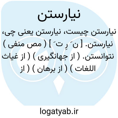 نیارستن. [ ن َ رِ ت َ ] ( مص منفی ) نتوانستن. ( از جهانگیری ) ( از غیاث اللغات ) ( از برهان ) ( از رشیدی ) ( انجمن آرا ) ( آنندراج ). از دستش برنیامدن. ( از انجمن آرا ). مقابل آرستن و یارستن. رجوع به یارستن شود: