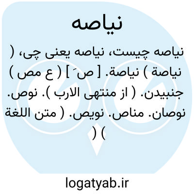 ( نیاصة ) نیاصة. [ ص َ ] ( ع مص ) جنبیدن. ( از منتهی الارب ). نوص. نوصان. مناص. نویص. ( متن اللغة ) ( اقرب الموارد ). منیص. ( متن اللغة ). رجوع به نَوص و نوصان شود.