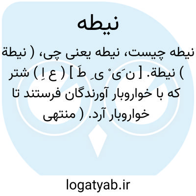 لغت نامه دهخدا ( نیطة ) نیطة. [ ن َی ْ ی ِ طَ ] ( ع اِ ) شتر که با خواروبار آورندگان فرستند تا خواروبار آرد. ( منتهی الارب ) ( آنندراج ) ( از متن اللغة ) ( از اقرب الموارد ).