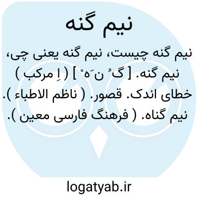 نیم گنه. [ گ ُ ن َه ْ ] ( اِ مرکب ) خطای اندک. قصور. ( ناظم الاطباء ). نیم گناه. ( فرهنگ فارسی معین ).