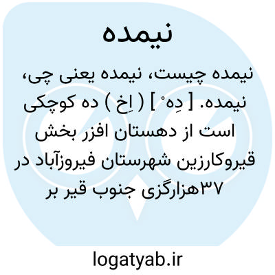 نیمده. [ دِه ْ ] ( اِخ ) ده کوچکی است از دهستان افزر بخش قیروکارزین شهرستان فیروزآباد در 37هزارگزی جنوب قیر بر کنار راه عمومی به خنج واقع و دارای 126 تن سکنه است. ( از فرهنگ جغرافیائی ایران ج 7 ).