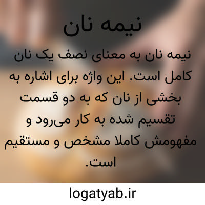 نیمه نان به معنای نصف یک نان کامل است. این واژه معمولاً برای اشاره به بخشی از نان که به دو قسمت تقسیم شده به کار میرود و مفهومش کاملاً مشخص و مستقیم است. در زبان عامیانه و متون قدیمی، نیمه نان به سادگی برای توصیف سهمی از نان استفاده میشود.