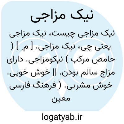 نیک مزاجی. [ م ِ ] ( حامص مرکب ) نیکومزاجی. دارای مزاج سالم بودن. || خوش خویی. خوش مشربی. ( فرهنگ فارسی معین ).