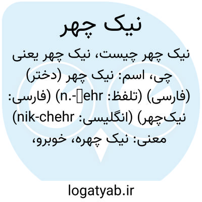 اسم: نیک چهر (دختر) (فارسی) (تلفظ: n.-čehr) (فارسی: نيک‌چهر) (انگلیسی: nik-chehr)