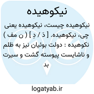 نیکوهیده. [ دَ / دِ ] ( ن مف ) نکوهیده: دولت بوئیان نیز به ظلم و ناشایست پیوسته گشت و سیرت بد و مذهب نیکوهیده فراز آوردند. ( مجمل التواریخ ).