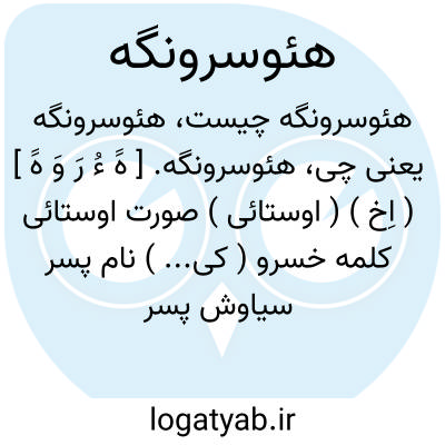 هئوسرونگه. [ هََ ءُ رَ وَ هََ ] ( اِخ ) ( اوستائی ) صورت اوستائی کلمه خسرو ( کی... ) نام پسر سیاوش پسر کیکاوس از پادشاهان پیشدادی و لقب چند تن از پادشاهان ساسانی بوده است. این کلمه به معنی «خوب سروده شده » میباشد. ( از فرهنگ ایران باستان، تألیف پورداود، ص 33 ).
