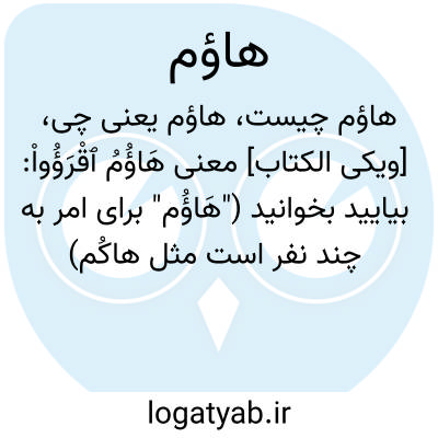 [ویکی الکتاب] معنی هَاؤُمُ ﭐقْرَؤُواْ: بیایید بخوانید ("هَاؤُم" برای امر به چند نفر است مثل هاکُم)