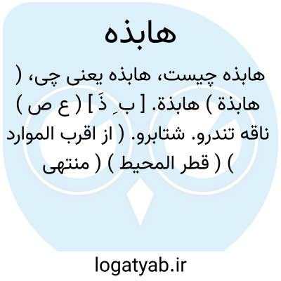 ( هابذة ) هابذة. [ ب ِ ذَ ] ( ع ص ) ناقه تندرو. شتابرو. ( از اقرب الموارد ) ( قطر المحیط ) ( منتهی الارب ) ( آنندراج ). ماده شتر تیزرو. ( ناظم الاطباء ). ج، هوابذ.