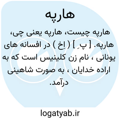 هارپه. [ پ ِ ] ( اِخ ) در افسانه های یونانی، نام زن کلینیس است که به اراده خدایان، به صورت شاهینی درآمد.