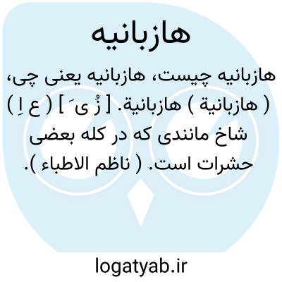 ( هازبانیة ) هازبانیة. [ زُ ی َ ] ( ع اِ ) شاخ مانندی که در کله بعضی حشرات است. ( ناظم الاطباء ). شاخک.