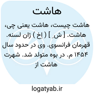 هاشت. [ ش ِ ] ( اِخ ) ژان لسنه. قهرمان فرانسوی. وی در حدود سال 1454 م. در بوه متولد شد. شهرت هاشت از آنجاست که زادگاه خود را که در سال 1472 م. در محاصره شارل لو ته مرر قرار گرفته بود بگشود.
