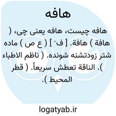 ( هافة ) هافة. [ ف َ ] ( ع ص ) ماده شتر زودتشنه شونده. ( ناظم الاطباء ). الناقة تعطش سریعاً. ( قطر المحیط ).