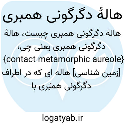 {contact metamorphic aureole} [زمین شناسی] هاله ای که در اطراف دگرگونی همبَری با فواصلی بین چند سانتی متر تا چند کیلومتر از تودۀ نفوذی به صورت زون بندی مشاهده می شود