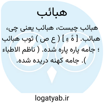 هبائب. [ هََ ءِ ] ( ع ص ) ثوب هبائب؛ جامه پاره پاره شده. ( ناظم الاطباء ). جامه کهنه دریده شده. ( منتهی الارب ) ( آنندراج ).