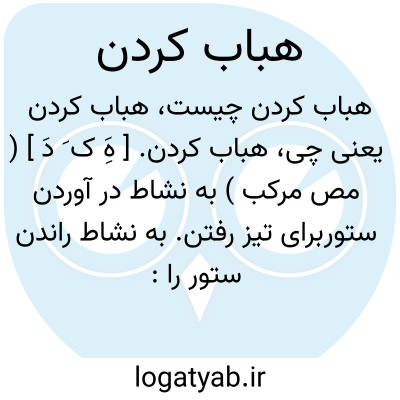 هباب کردن. [ هَِ ک َ دَ ] ( مص مرکب ) به نشاط در آوردن ستوربرای تیز رفتن. به نشاط راندن ستور را: