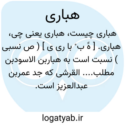هباری. [ هََ ب ْ با ری ی ] ( ص نسبی ) نسبت است به هباربن الاسودبن مطلب.... القرشی که جد عمربن عبدالعزیز است. ( اللباب فی تهذیب الانساب ).