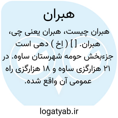 هبران. [ ] ( اِخ ) دهی است جزءبخش حومه شهرستان ساوه. در 21 هزارگزی ساوه و 18 هزارگزی راه عمومی آن واقع شده. ناحیه ای است کوهستانی، سردسیر و دارای 239 تن سکنه ترکی و فارسی زبان است. محصولات آنجا غلات و بنشن و دارای باغهای بادام و گردو و سیب میباشد. شغل مردم زراعت و گله داری و کار دستی آنان گلیم و جاجیم بافی است. مزرعه، گنداب، یلی قیه جزء این ده است. راه مالرو دارد و از طریق لامکان میتوان ماشین برد. ( از فرهنگ جغرافیایی ایران ج 1 ).