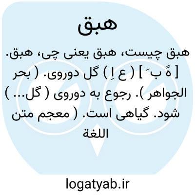 هبق. [ هََ ب َ ] ( ع اِ ) گل دوروی. ( بحر الجواهر ). رجوع به دوروی ( گل... ) شود. گیاهی است. ( معجم متن اللغة ). و رجوع به هِبِق شود.