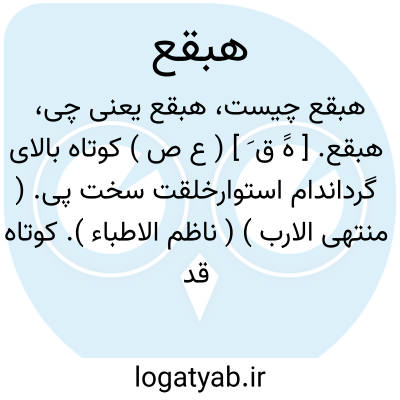 هبقع. [ هََ ق َ ] ( ع ص ) کوتاه بالای گرداندام استوارخلقت سخت پی. ( منتهی الارب ) ( ناظم الاطباء ). کوتاه قد استوارخلقت. ( اقرب الموارد ) ( معجم متن اللغة ). ج، هباقع.