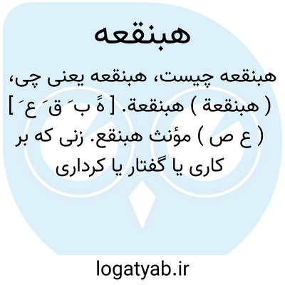 ( هبنقعة ) هبنقعة. [ هََ ب َ ق َ ع َ ] ( ع ص ) مؤنث هبنقع. زنی که بر کاری یا گفتار یا کرداری مستقیم نباشد و اعتماد بر او نشاید.( اقرب الموارد ). || شتر فراخ کنج دهن فروهشته لب. ( منتهی الارب ) ( ناظم الاطباء ) ( اقرب الموارد ).