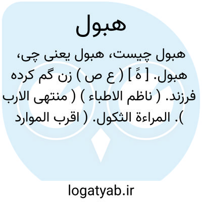 هبول. [ هََ ] ( ع ص ) زن گم کرده فرزند. ( ناظم الاطباء ) ( منتهی الارب ). المراءة الثکول. ( اقرب الموارد ) ( معجم متن اللغة ) ( لسان العرب ). ثاکلة. || زن بی فرزند. ( منتهی الارب ) ( ناظم الاطباء ). زنی که فرزندی برایش باقی نماند. ( معجم متن اللغة ) ( لسان العرب ).