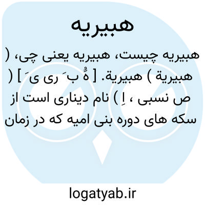 ( هبیریة ) هبیریة. [ هَُ ب َ ری ی َ ] ( ص نسبی، اِ ) نام دیناری است از سکه های دوره بنی امیه که در زمان خلافت یزیدبن عبدالملک، بوسیله عمربن هبیرة زده شد. عیار آن سکه 6 دانه بود. پس ازبنی امیه، منصور خلیفه عباسی فقط سه سکه از نقود اموی را پذیرفت و آن سه عبارت بود از هبیریة، خالدیة ویوسفیة که سالها رواج داشتند. عمربن هبیرة و خالدبن عبداﷲ البجلی و یوسف بن عمر که هرکدام یکی از این سکه ها را زده و به نام خود ایشان معروف شدند، هر سه ازعمال بنی امیه در عراق بودند. ( از النقودالعربیة ).
