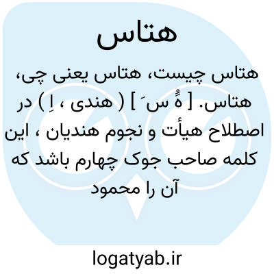 هتاس. [ هَُ س َ ] ( هندی، اِ ) در اصطلاح هیأت و نجوم هندیان، این کلمه صاحب جوک چهارم باشد که آن را محمود دانند. هتاس همان نار است. رجوع به ماللهند ص 265 شود. ظاهراً صورتی از هُتاشَن است. رجوع به هُتاشَن شود.