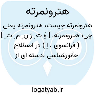 هترونمرته. [ هَِ ت ِ رُ ن ِ م ِ ت ِ ] ( فرانسوی، اِ ) در اصطلاح جانورشناسی،دسته ای از جانورانند که در دریا زندگی میکنند. بدن آنها دراز و باریک است و دهانشان در پشت سر قرار دارد. عضلات جدار خارجی بدن آنها دراز است. ( از جانورشناسی سیستماتیک، تألیف دکتر اسماعیل آزرم ج 1 ص 179 ).