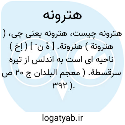 ( هترونة ) هترونة. [ هََ ن َ ] ( اِخ ) ناحیه ای است به اندلس از تیره سرقسطة. ( معجم البلدان ج 20 ص 392 ).