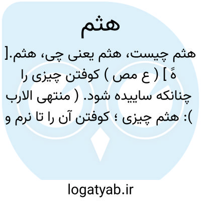 هثم.[ هََ ] ( ع مص ) کوفتن چیزی را چنانکه ساییده شود. ( منتهی الارب ): هثم چیزی؛ کوفتن آن را تا نرم و ساییده گردد. ( ناظم الاطباء ) ( از اقرب الموارد ) ( از معجم متن اللغة ). || به یک بار مال نیکو و کلان دادن. ( از منتهی الارب ) ( ناظم الاطباء ). به یک بار مال نیکو و جید دادن کسی را. ( از اقرب الموارد ) ( از معجم متن اللغة ). قثم. || بخشیدن. ( شمس اللغات ).