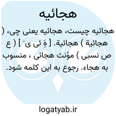 ( هجائیة ) هجائیة. [ هَِ ئی ی َ ] ( ع ص نسبی ) مؤنث هجائی، منسوب به هجاء. رجوع به این کلمه شود.