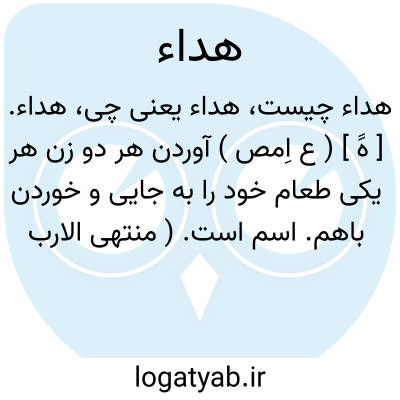 هداء. [ هَِ ] ( ع مص ) ( از «هَدی » ) عروس را به خانه آوردن. || فرستادن عروس را به خانه شوی. || پیش درآمدن. || پیشی گرفتن. || ( ص ) سست. || کندخاطر. ( منتهی الارب ).