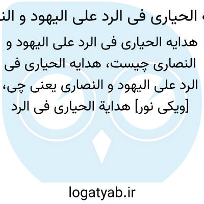 [ویکی نور] هدایة الحیاری فی الرد علی الیهود و النصاری، اثر ابن قیم جوزی، در دفاع از اسلام در مقابل یهود و نصاری و پاسخ به شبهات آنان در نبوت پیامبر(ص) است.