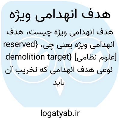 {reserved demolition target} [علوم نظامی] نوعی هدف انهدامی که تخریب آن باید تحت نظارت دقیق و در مرحلۀ خاصی از دستور عملیاتی صورت گیرد، زیرا در اجرای طرح های عملیاتی راهکنشی یا راهبردی نقش حیاتی دارد