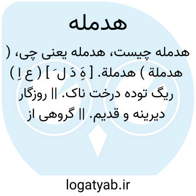 ( هدملة ) هدملة. [ هَِ دَ ل َ ] ( ع اِ ) ریگ توده درخت ناک. || روزگار دیرینه و قدیم. || گروهی از مردم. ( منتهی الارب ) ( اقرب الموارد ).
