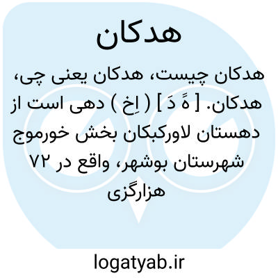 هدکان. [ هََ دَ ] ( اِخ ) دهی است از دهستان لاورکبکان بخش خورموج شهرستان بوشهر، واقع در 72 هزارگزی خورموج و کنار خلیج فارس. جایی است جلگه، گرمسیر و دارای 178 تن سکنه. از چاه مشروب میشود. محصول عمده اش غلات و خرما و شغل اهالی زراعت و صید ماهی است. ( از فرهنگ جغرافیایی ایران ج 7 ).