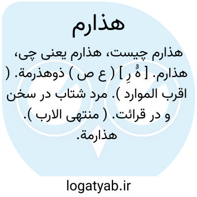 هذارم. [ هَُ رِ ] ( ع ص ) ذوهذرمة. ( اقرب الموارد ). مرد شتاب در سخن و در قرائت. ( منتهی الارب ). هذارمة. رجوع به هذارمة شود.