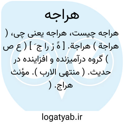( هراجة ) هراجة. [ هََ رْ را ج َ ] ( ع ص ) گروه درآمیزنده و افزاینده در حدیث. ( منتهی الارب ). مؤنث هراج. ( از اقرب الموارد ).