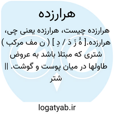لغت نامه دهخدا هرارزده.[ هَُ زَ دَ / دِ ] ( ن مف مرکب ) شتری که مبتلا باشد به عروض طاولها در میان پوست و گوشت. || شتر گرفتار اسهال. ( ناظم الاطباء ). رجوع به هرار شود.