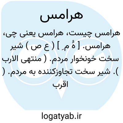 لغت نامه دهخدا هرامس. [ هَُ م ِ ] ( ع ص ) شیر سخت خونخوار مردم. ( منتهی الارب ). شیر سخت تجاوزکننده به مردم. ( اقرب الموارد ).